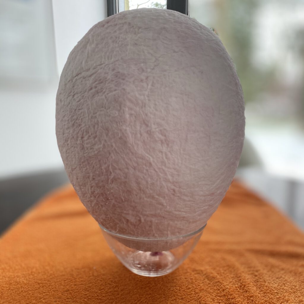 Dann muss das Osterei ca. 24 Stunden trocknen! Einfach auf ein Glas oder Schale legen und mehrfach wenden, damit das Osterei von jeder Seite trocknen kann! Alternativ einfach zum Trocknen aufhängen!