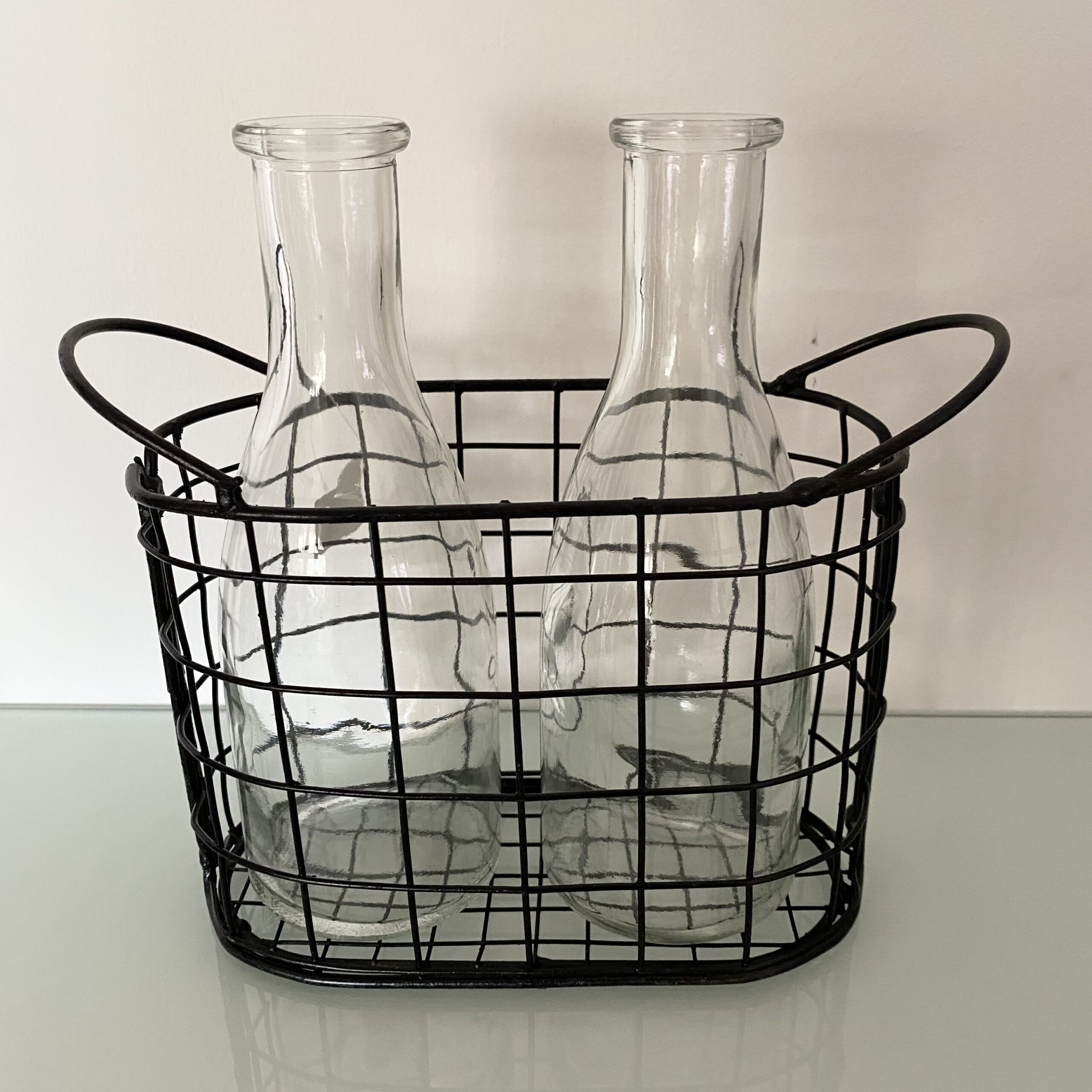 2tlg. Glasflaschen-Vasen-Set “MILLY” mit Drahtkorb