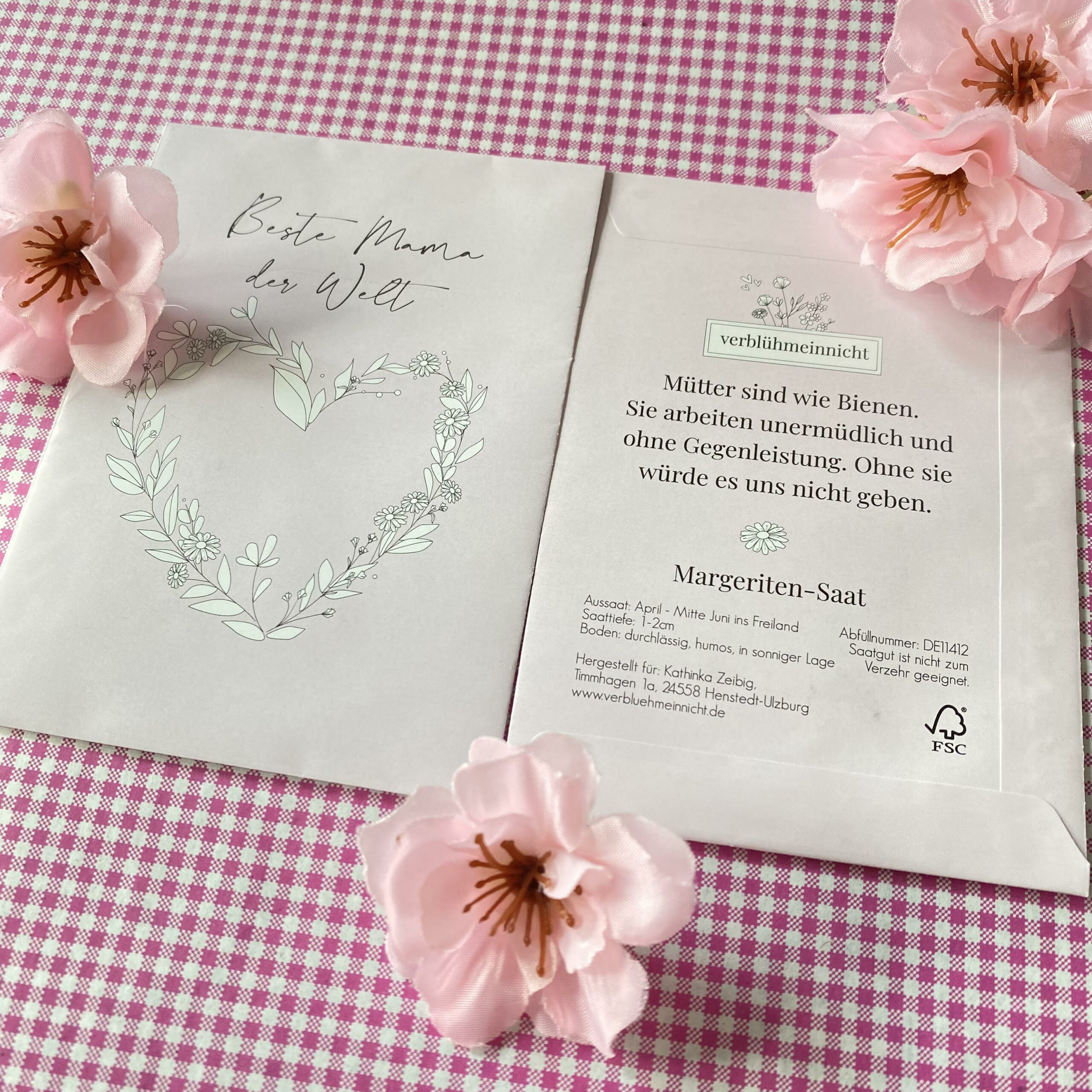 sowie eine Tüte Pflanzsamen Margeriten-Saat “BESTE MAMA DER WELT” von verblühmeinicht: