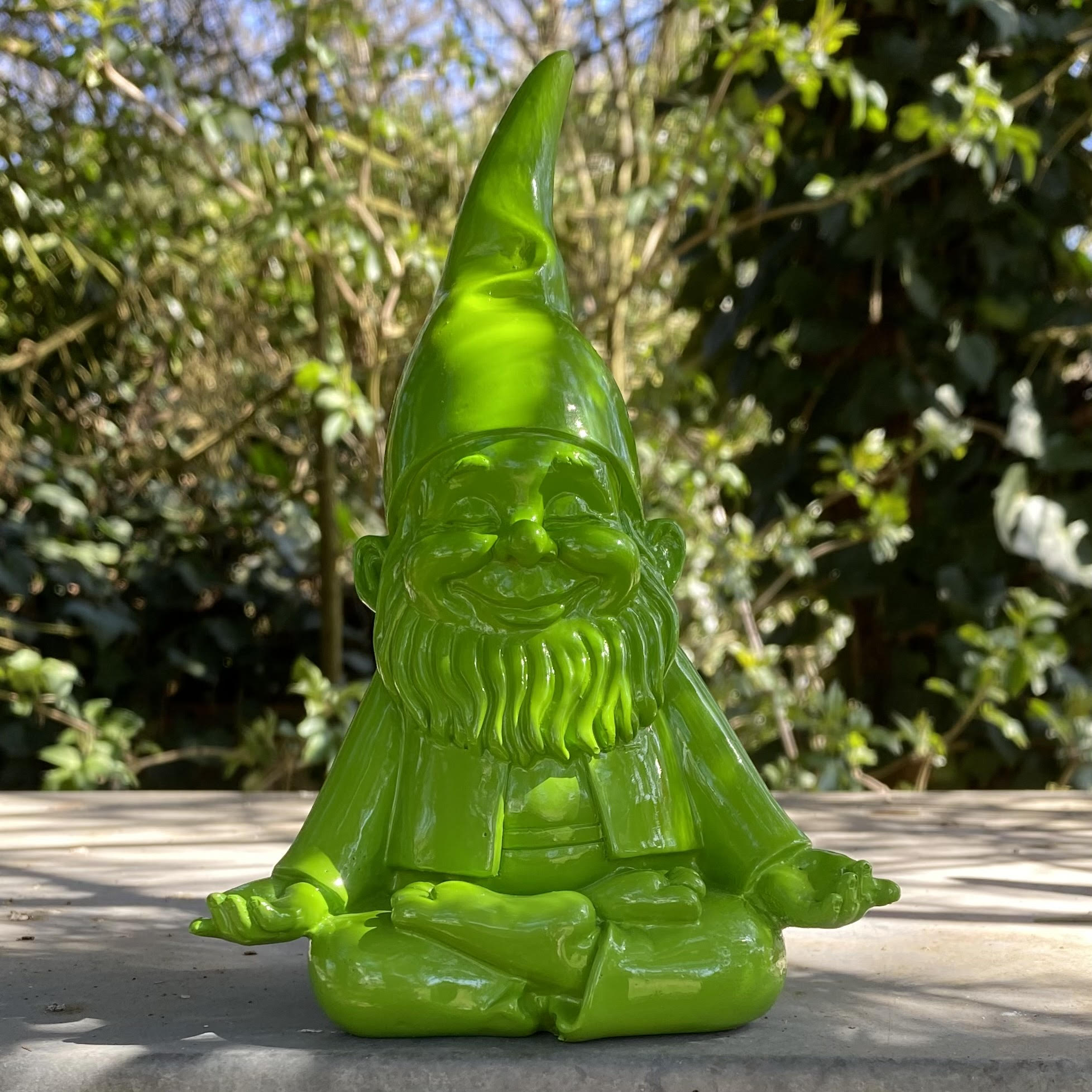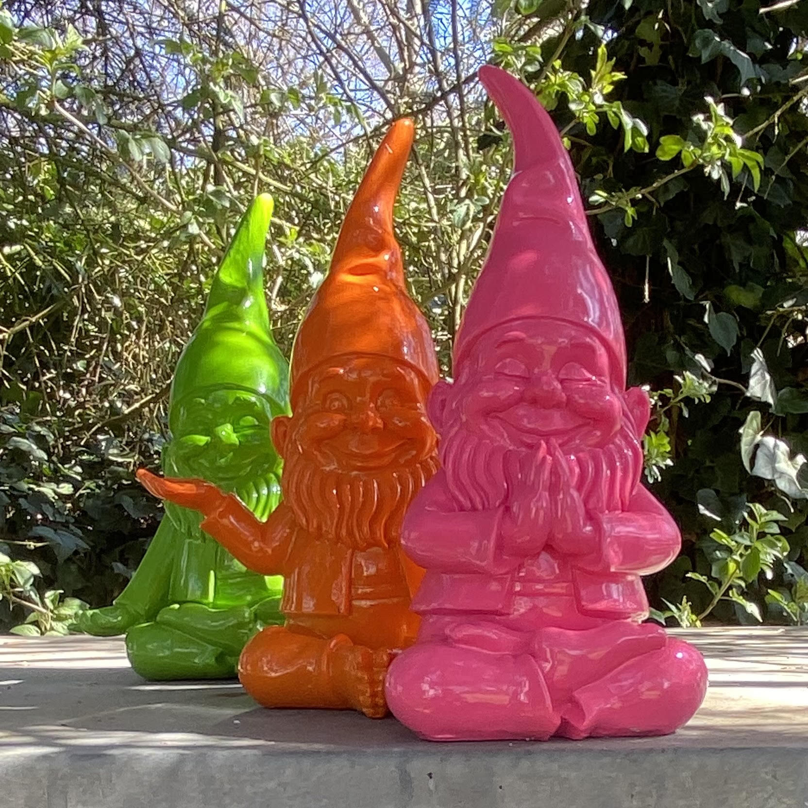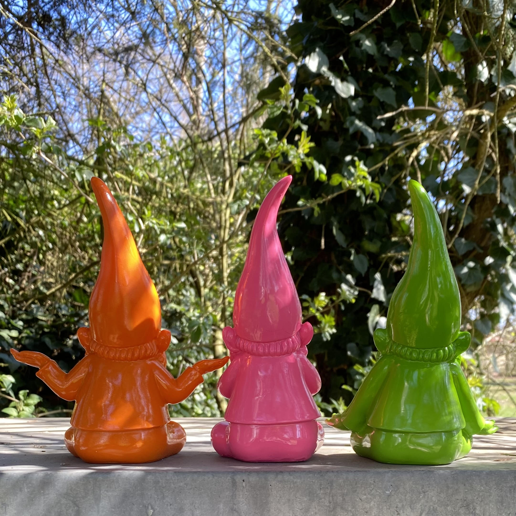 Lustige, chillige Yoga-Zwerge aus Poly in drei verschiedenen Farben für Haus und Garten.