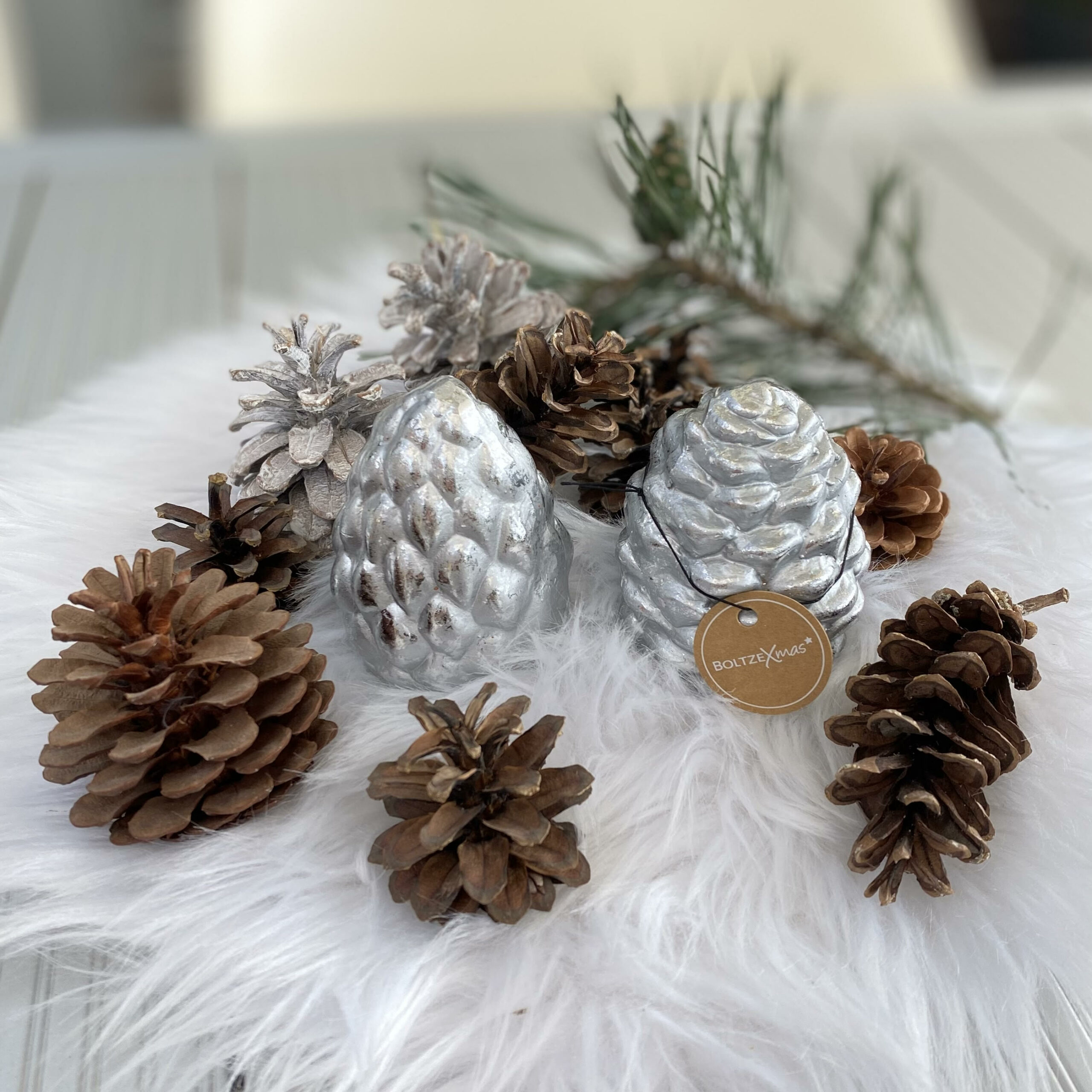 Tolle Dekoaufsteller in verschiedener Zapfenform in antiksilber als 2tlg. Set.