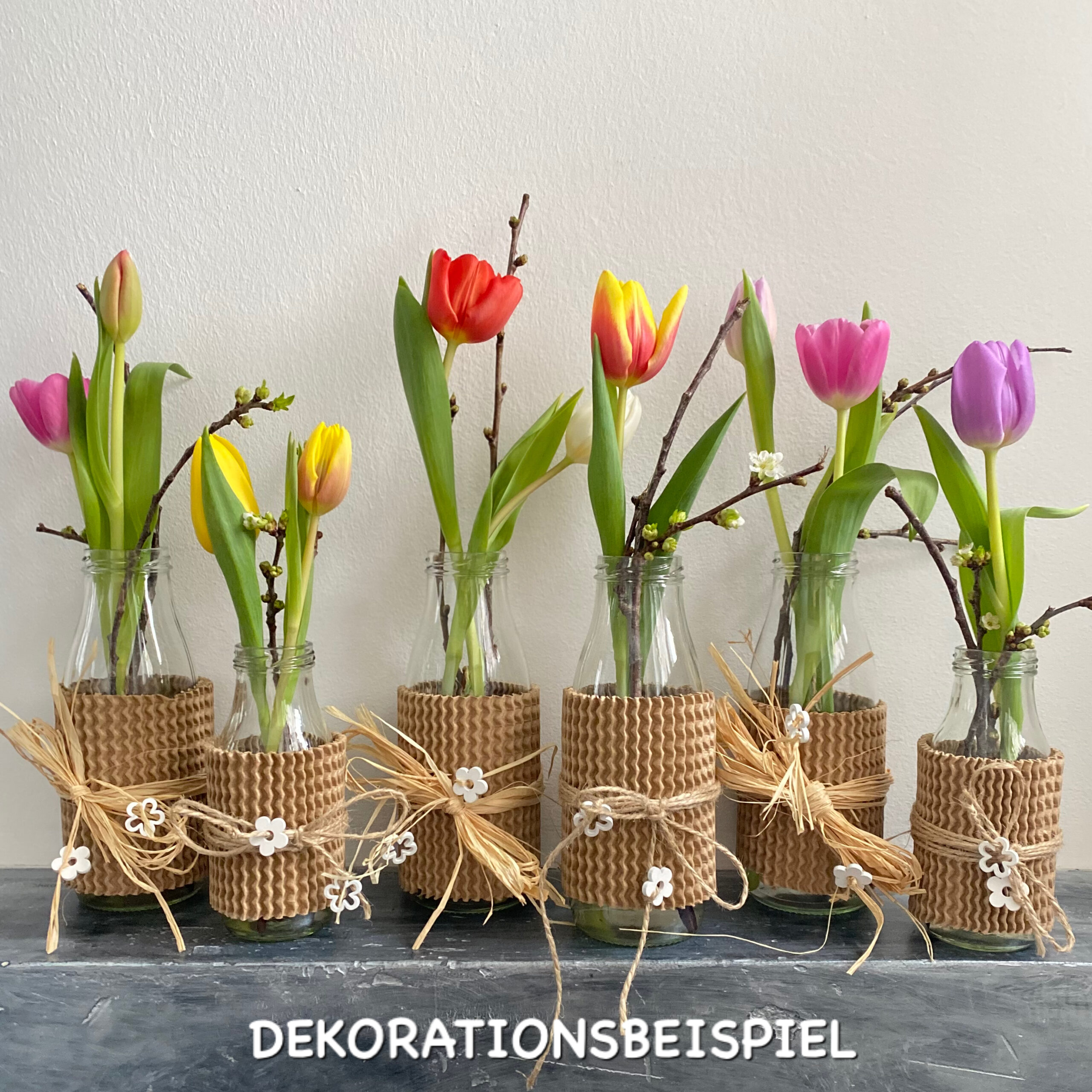 Zu jedem Flaschenset erhaltet ihr eine selbstgemachte Krepppapier-Nelke gratis dazu. Geschenktüte anbei.