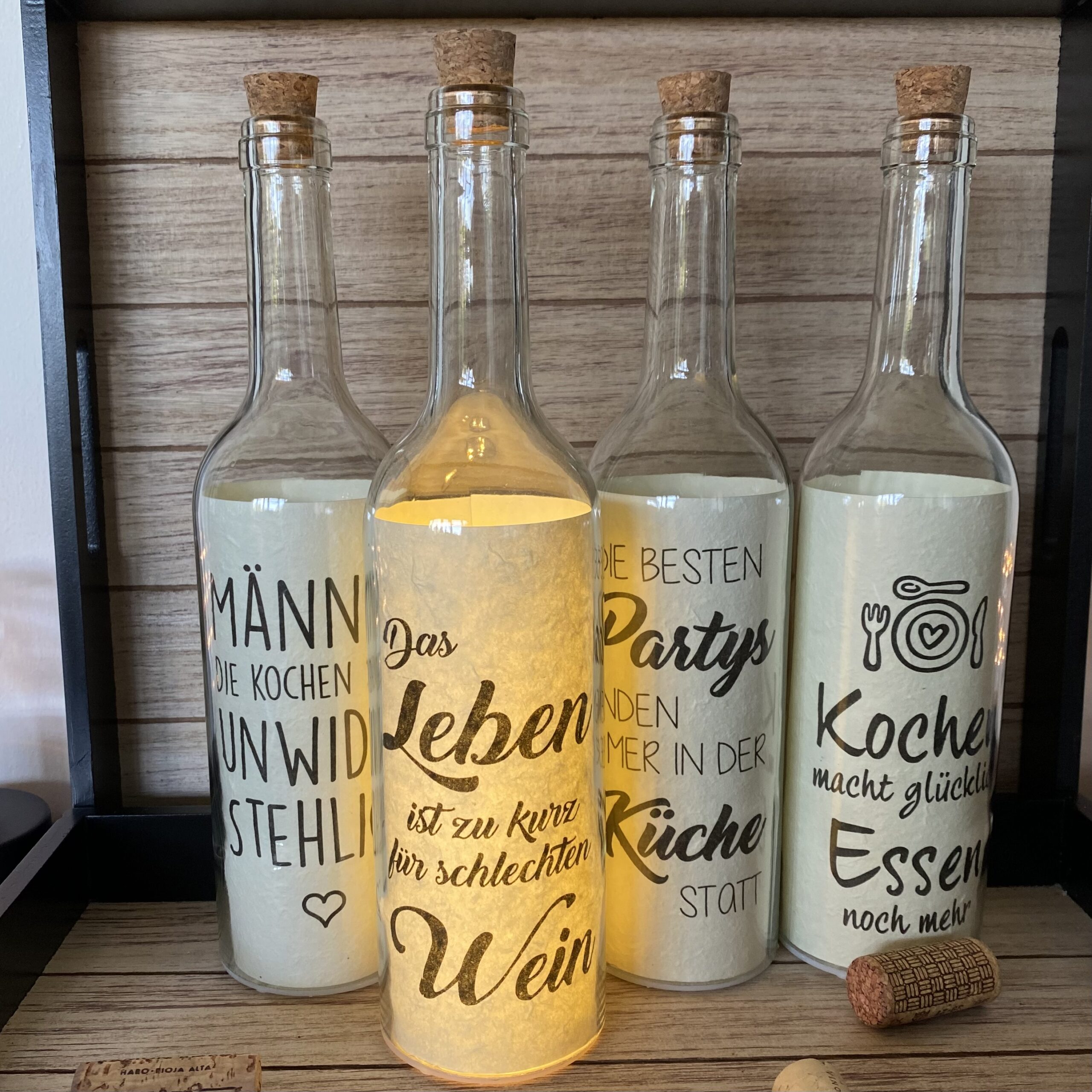 Schreibe die erste Rezension für „Glasflasche mit Spruch: “DAS LEBEN IST ZU KURZ FÜR SCHLECHTEN WEIN” mit 5er LED-Beleuchtung“