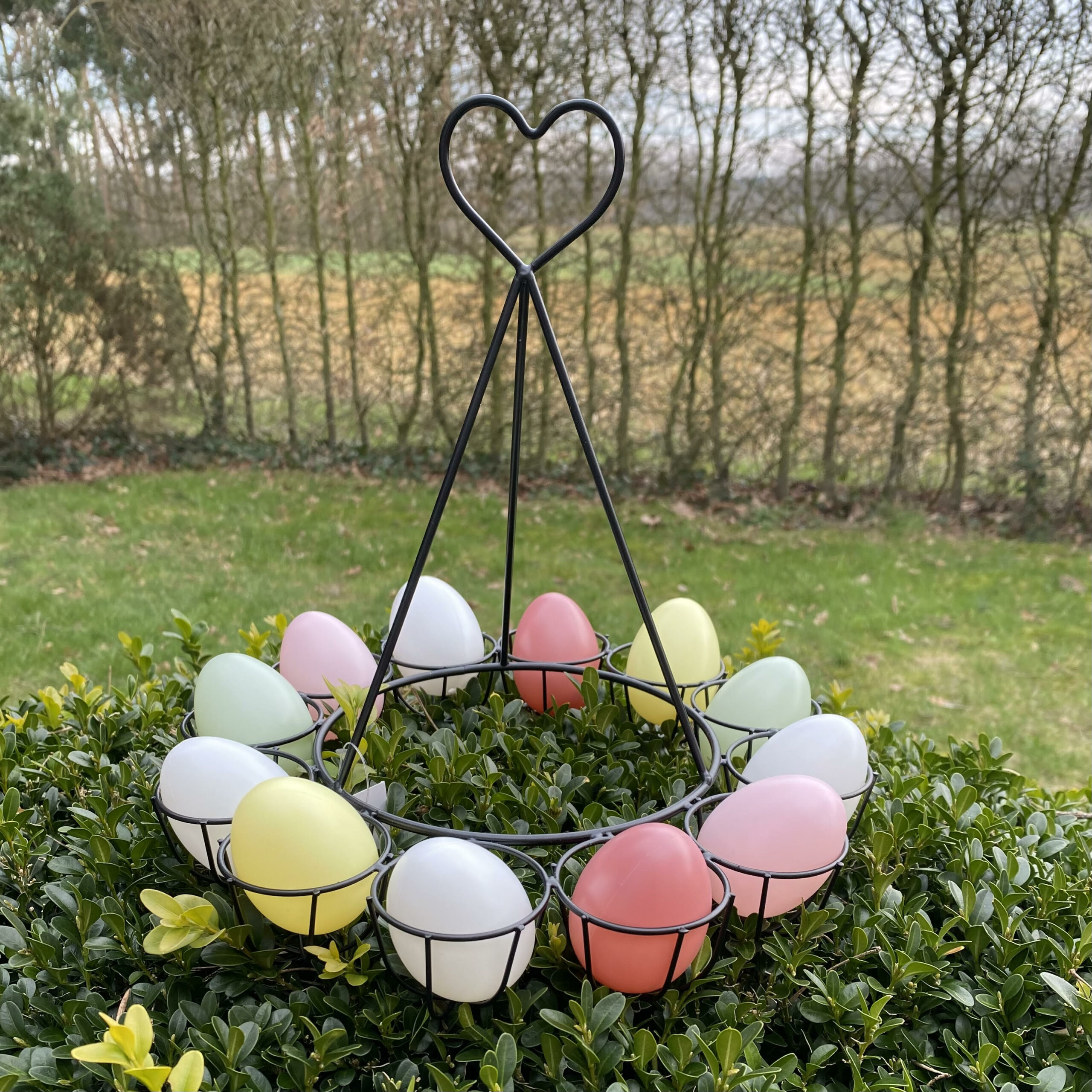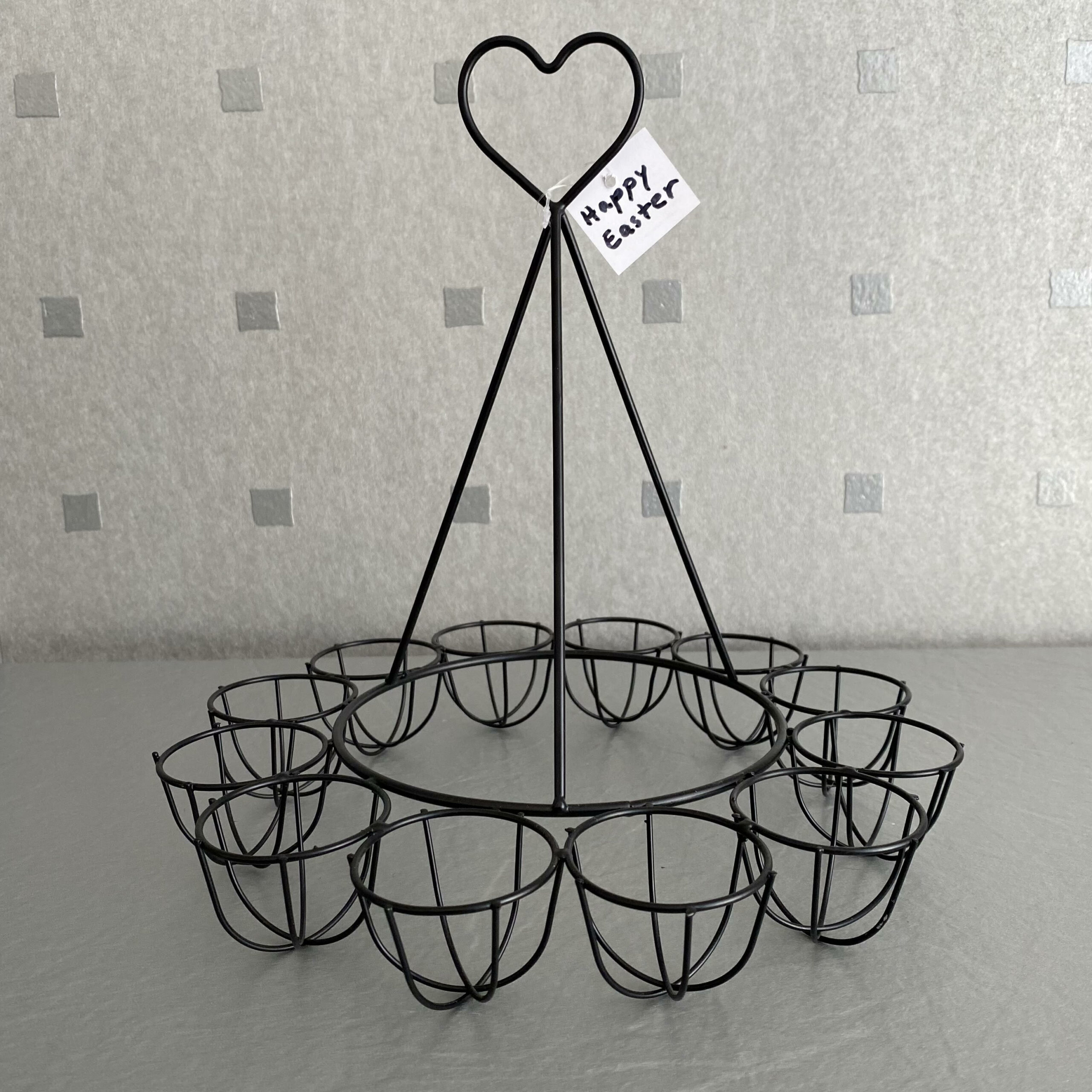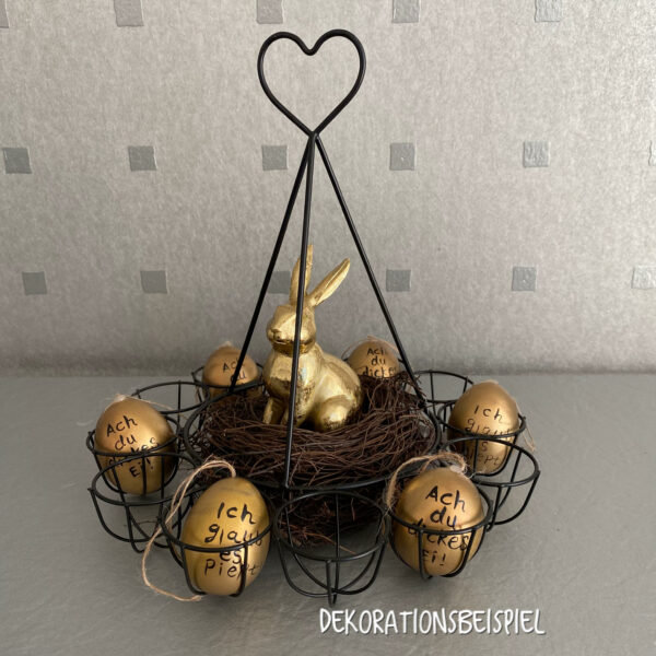 Mit diesem tollen Eierhalter “Lepe” aus Metall mit 12 Halter ist kein Suchen mehr nötig. So kannst Du alle Eier beisammen halten und stylisch auf dem Ostertisch präsentieren.