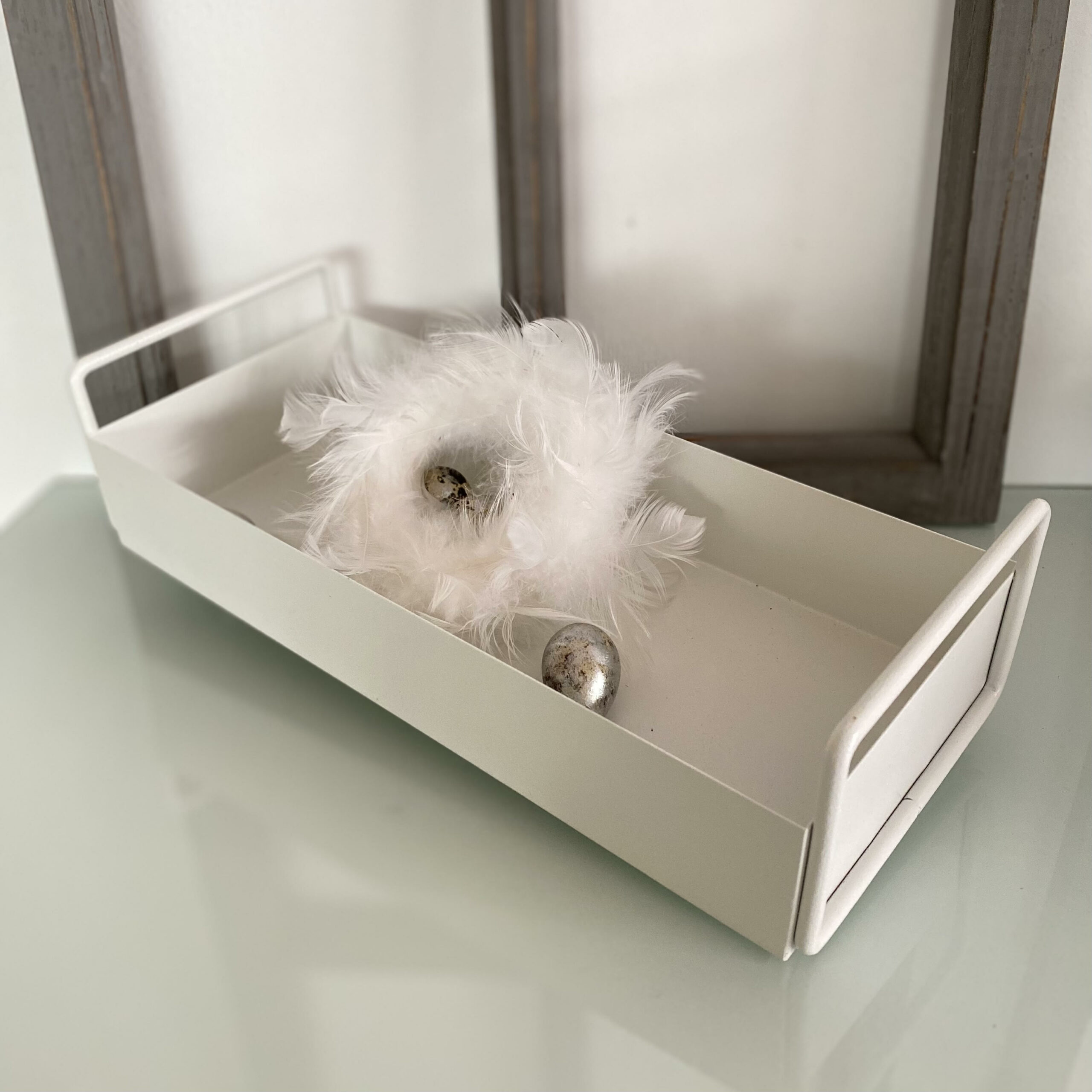 Schickes rechteckiges Metall-Tablett; vielseitig verwendbar.