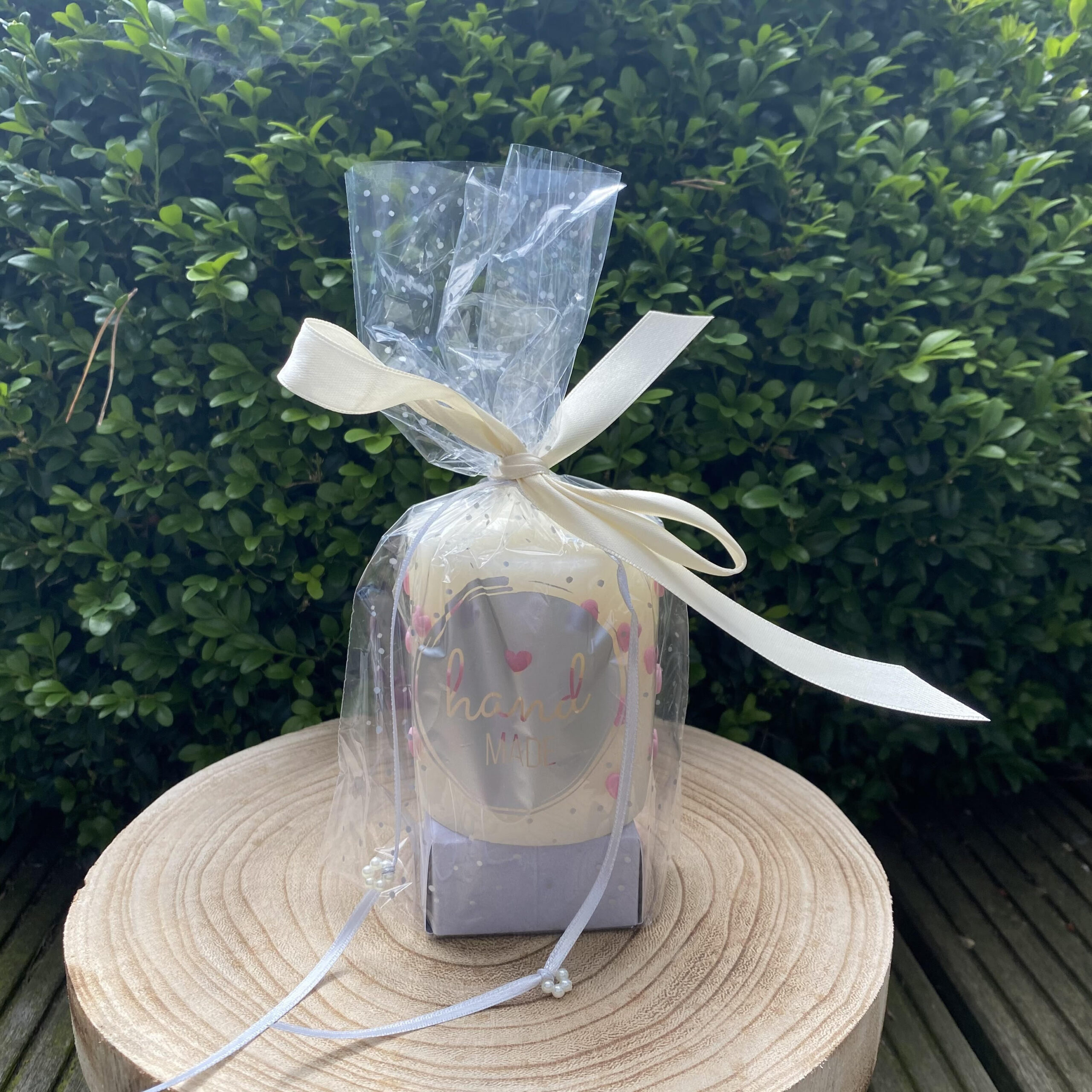 Jede Kerze wird individuell in eine Geschenktüte verpackt und verbirgt noch eine Überraschung in sich.