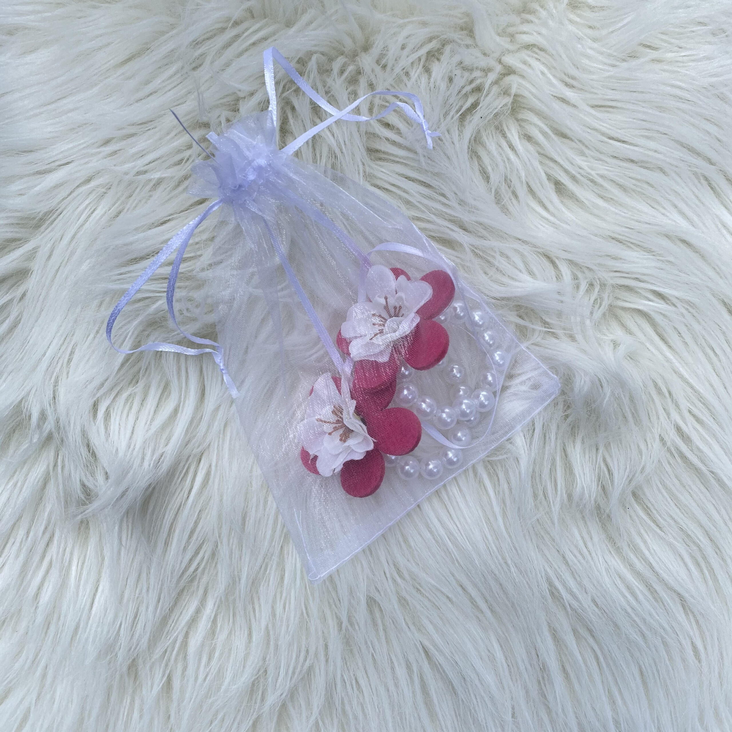 Die Serviettenringe werden in einem weißen Organzasäckchen geliefert.