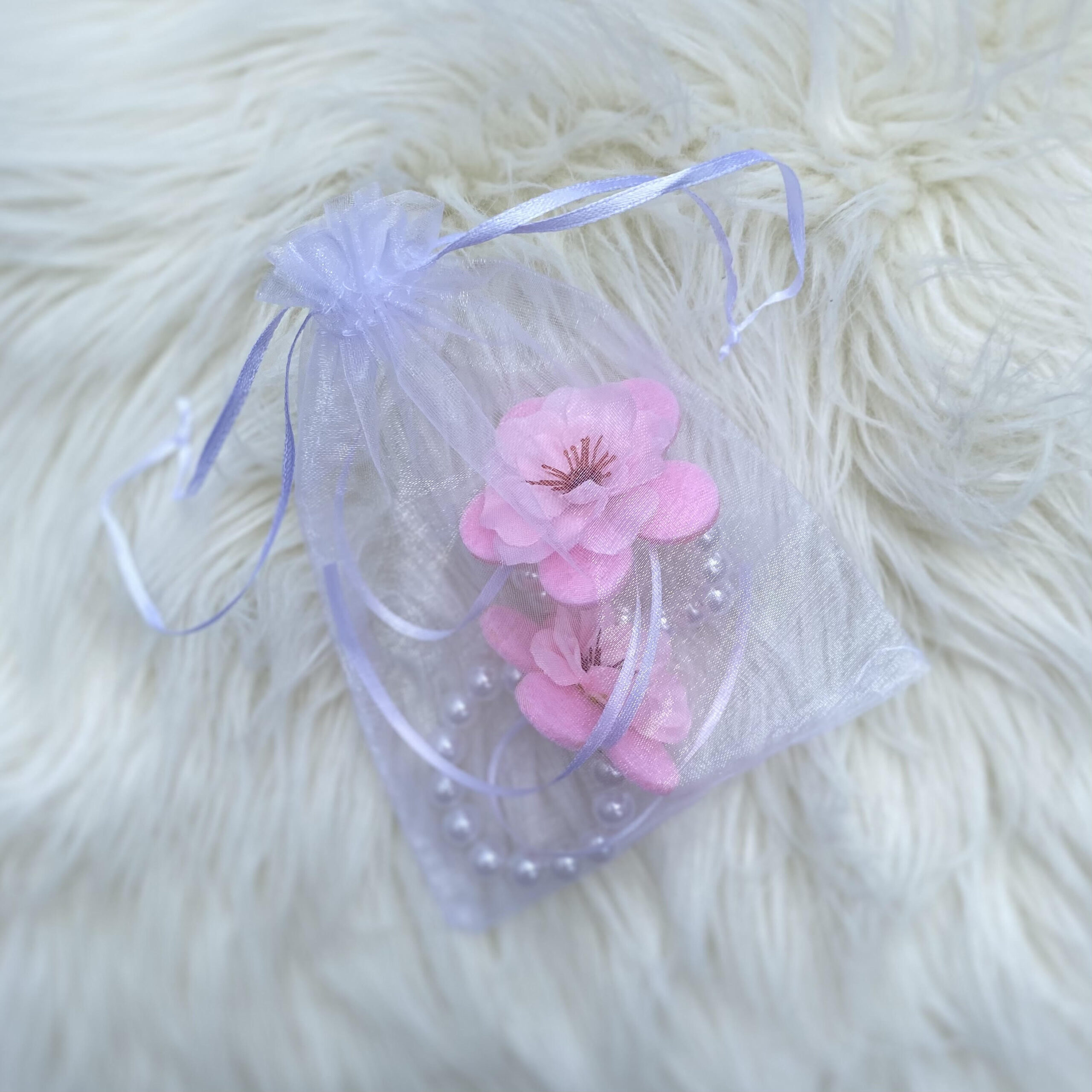 Die Serviettenringe werden in einem weißen Organzasäckchen geliefert.