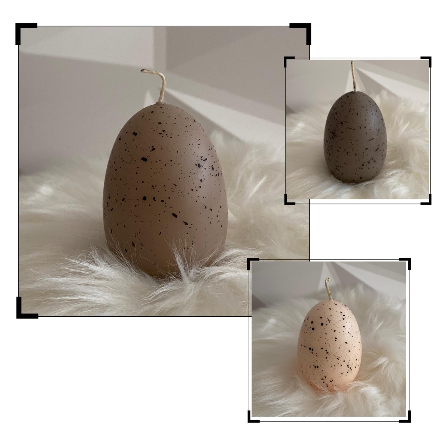Vogeleikerze in drei Naturtönen.